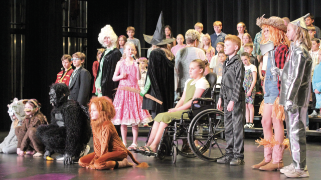For Good!: The OABCIG-Ida Grove 4th and 5th graders hosted a Spring Concert on Thursday night at the high school auditorium. One of their numbers was the song “For Good” from the movie “Wicked,” a musical fantasy film that tells the story of the Wicked Witch of the West in the Land of Oz. The characters and those who played them included: Glinda - Melody Tietsort, Elphaba - Brooke Schmidt, Ape - Jacob Dannull, Goat - Victoria Johnson, Lion - Tonie Boysen, Monkey - Adalynn Trierweiler, Madame - Morrible - Aleece Hoffman, Nessarose - Madelyn Miesner, Bog - Leo Rector, Fiyero - Landon Ayala, Wizard - Trace Conkling, Scarecrow - Henley Collins, Tin Man - Eve Reiss. Photo by Brent Harm